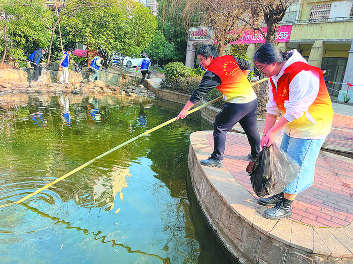 “‘巷’约一小时”志愿者在捞取漂浮物。