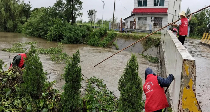 华容县操军镇文明实践志愿者开展大堤扫障和河道清理工作。