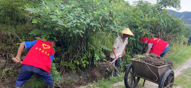 君山区许市镇新时代文明实践所组织文明实践志愿者及时清理导浸沟,并对冲坏的水库干道进行修复。