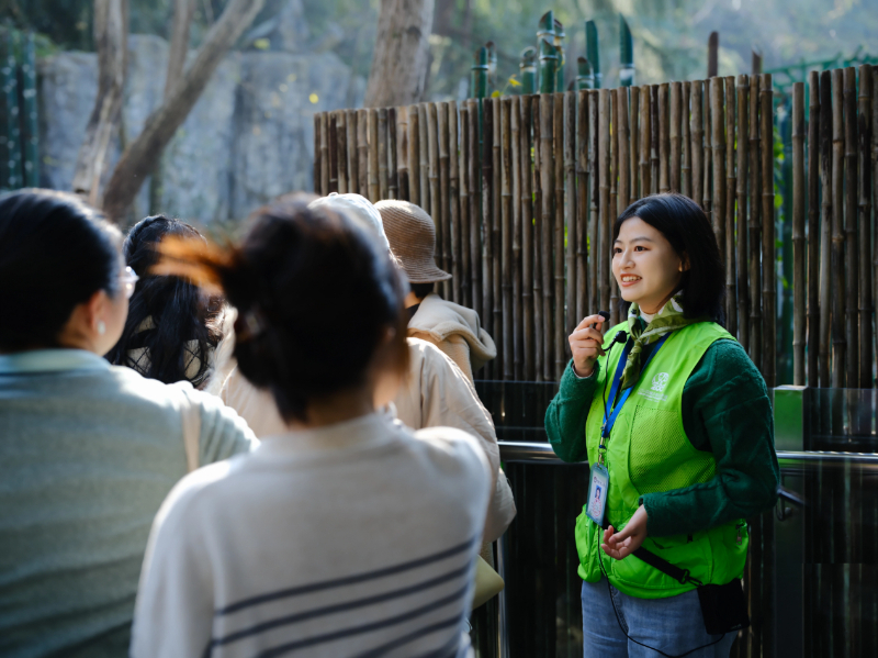 “红山动物园”快乐猩球志愿者向游客进行科普讲解。