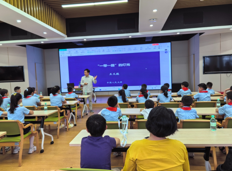 中国人民大学国际关系学院教授王义桅给青少年讲述“一带一路”的发展历程与意义。南京市秦淮区文明办供图。