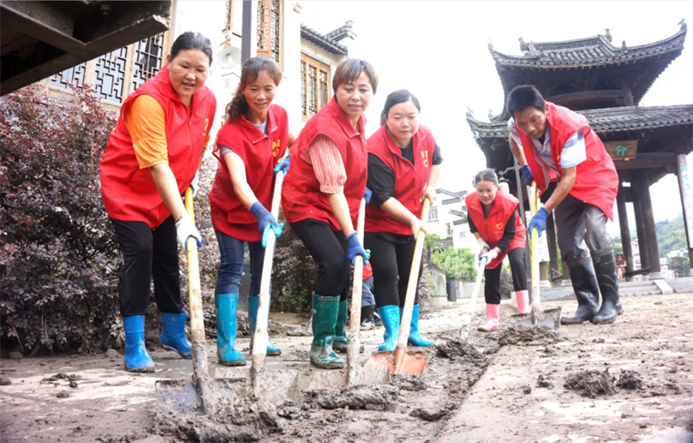 歙县渔梁社区新时代文明实践站开展环境整治活动。
