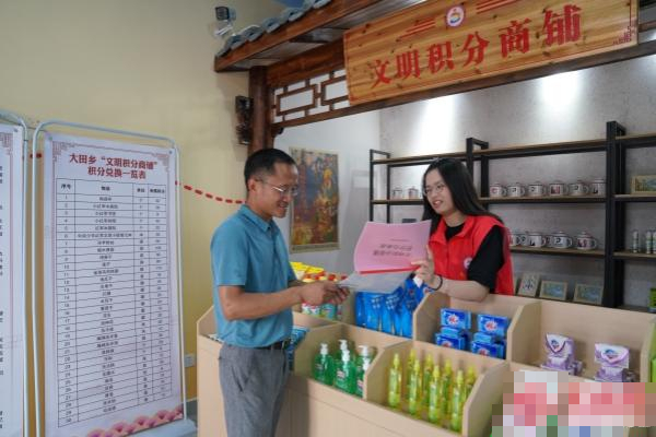 从细处入手,让环境美和人文美相得益彰。2022年,大田乡开始试行文明积分管理办法,设立“积分商铺”和“积分榜”,探索实践文明乡村创建工作新模式,对包括理论政策宣传、环境卫生整治、关爱孤寡老人等六大类十二项指标进行积分,并以积分兑换的方式引导群众从小处着眼,做文明村民。