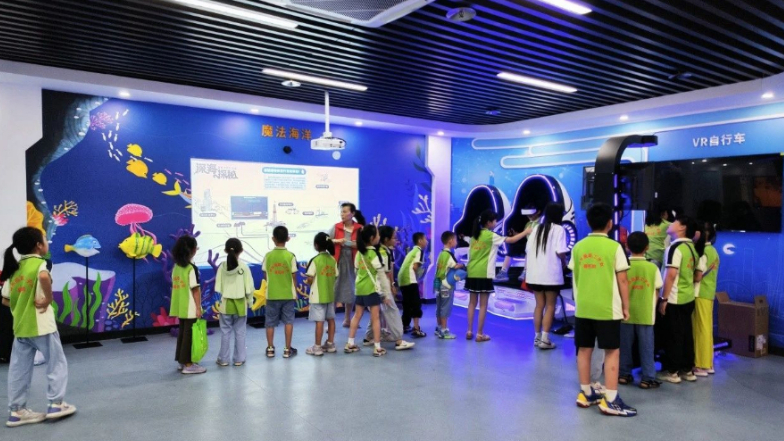 VR自行车虚拟体验、VR双座太空舱、HTC简易舞台……将乐县科技馆内,各类科技展品琳琅满目,从基础的物理原理到前沿的科技成果,应有尽有。