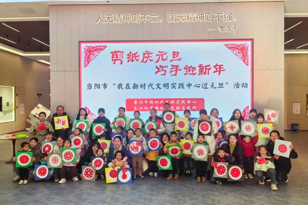 湖北省当阳市新时代文明实践中心开展“剪纸庆元旦 巧手迎新年——我在新时代文明实践中心过元旦”主题活动。市民群众齐动手,体验非遗剪纸之妙,感受传统文化魅力,共迎新年到来。