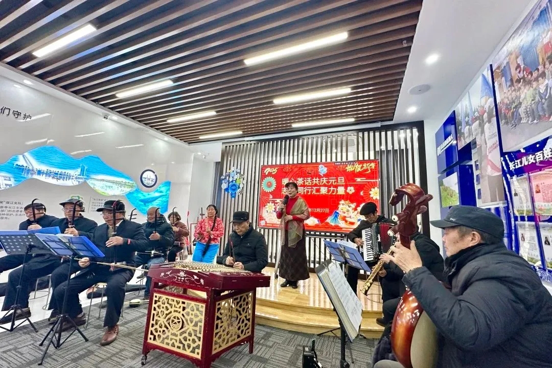 江苏省南京市江宁街道新洲村新时代文明实践站“暖心茶话共庆元旦 志愿同行汇聚力量”活动在长江守望者联盟之家拉开了帷幕,一群平均年龄70岁的叔叔阿姨们演奏各种乐器,通过音乐歌唱长江边旧貌换新颜的变化,表达心底的真实感受,庆祝新年到来。
