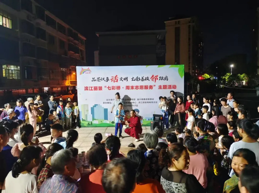 新时代文明实践“七彩桥”在社区内举办的主题活动。