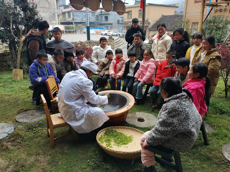 在敬南镇白河村,制茶手艺人正在向群众讲解手工制茶过程,传承弘扬茶文化。资料图片