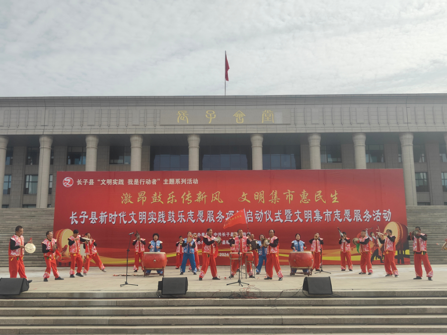 长子县新时代文明实践鼓乐志愿服务项目启动仪式暨文明集市志愿服务活动现场。