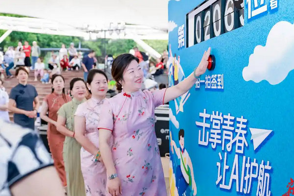 身穿旗袍的妈妈们正在“拍一拍”签到。