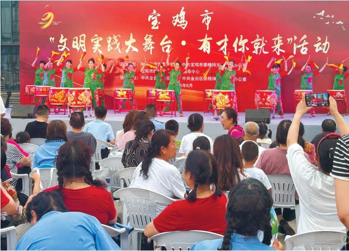 文明实践大舞台也是优质文化资源共享的平台。宝鸡市将“文明实践我行动暨强基工程——文艺助力基层精神文明建设”活动与“文明实践大舞台·有才你就来”活动紧密结合,在送文化的同时种文化,组织省市艺术院团走村串镇,为群众送去精彩的精神文化大餐。