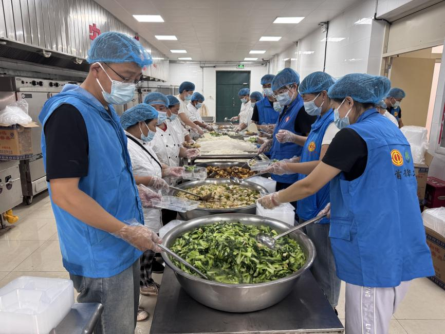 防洪志愿服务突击队志愿者为大家准备饭菜。图片来源:怀柔区总工会