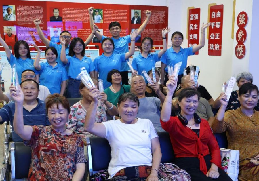 如果说文化导师是专业援军,那么“万名大学生进千站”就是青春力量。2025年暑假期间,江西省50所高校的近千名大学生来到永新县,目前累计开展各类实践活动近100余场。江西旅游商贸职业学院国际商务学院精心组建的“小桑叶”暑期社会实践队,在3名指导教师的带领下,以赋能乡村女性为重心,同步推进农村儿童关爱、独居老人陪伴及本土文化挖掘等工作;来自南昌大学口腔医学院学生社会实践队的队员为社区群众送去一堂生动的口腔健康科普课,开展了系列主题为“红土映三湾,护齿永新行”的文明实践活动,将专业的口腔健康知识送到群众“家门口”。