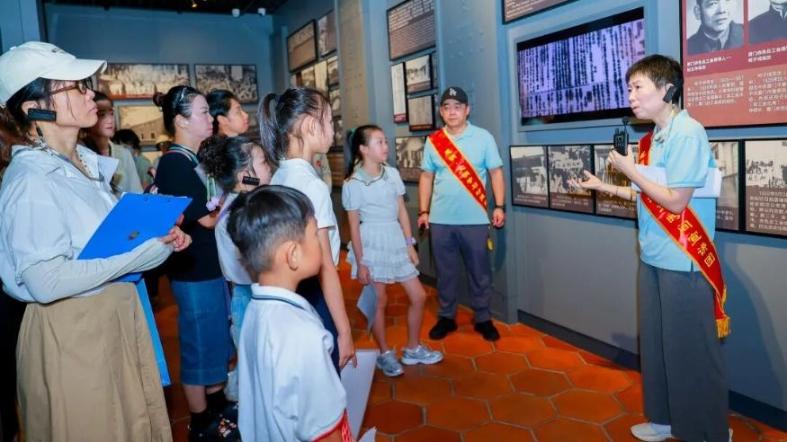 “思明・文明学习时间”志愿宣讲员曹雪清(右一)向市民群众讲述思明红色故事。思明区委文明办供图