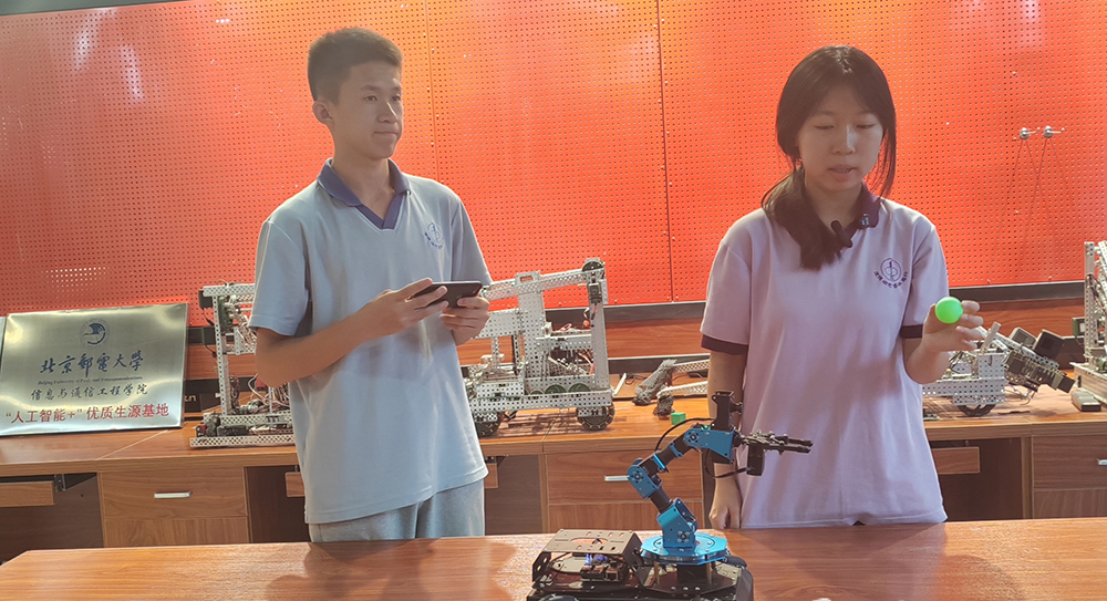 参加社团的学生在操作人工智能机器人。天山网-新疆日报记者贾春霞 摄