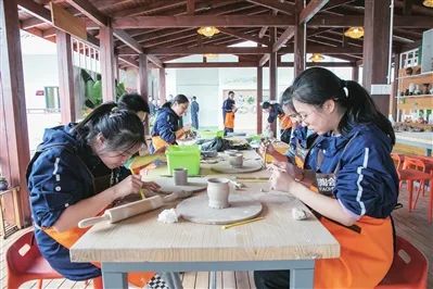 重庆市第十八中学“甜甜虎”美育空间,学生体验陶艺制作。重庆市委文明办供图