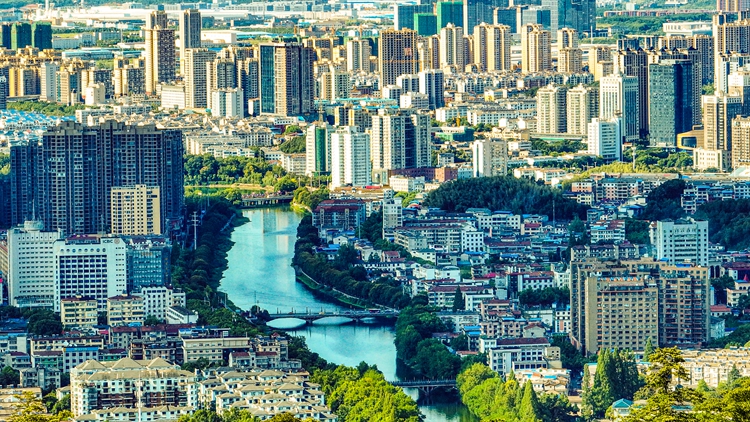 资料图:湖北省咸宁市淦河,城水相依,景色宜人。新华网发 刘震摄