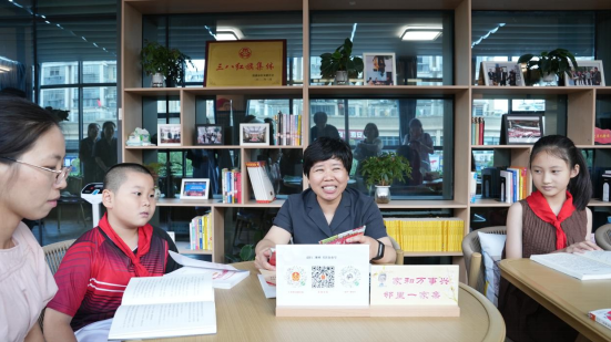 7月18日,在江西省贵溪市人民法院“周淑琴工作室”,贵溪市人民法院泗沥人民法庭庭长、“中国好人”周淑琴在主持阅读分享会,助力未成年人度过安全多彩暑假。新华网发 郭梓崧 摄