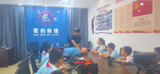 7月20日,江西省九江市永修县新时代文明实践中心内,工作人员正在给孩子们做急救演示。新华网记者 李雪芹 摄