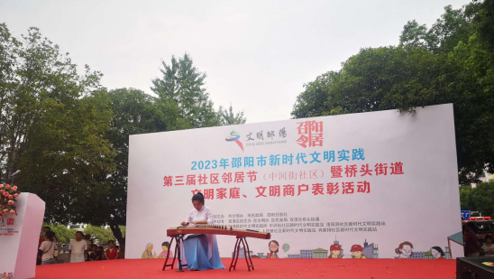 7月17日,邵阳市新时代文明实践·第三届社区邻居节活动现场社区居民正在表演节目。新华网记者 苏影 摄