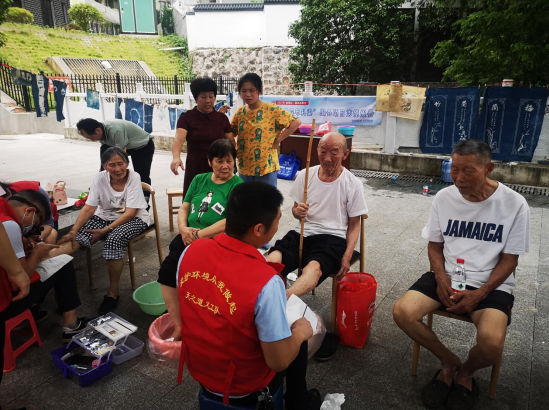 7月16日,邵阳红·周末志愿行活动现场志愿者为社区居民提供暖心服务。新华网记者 苏影 摄