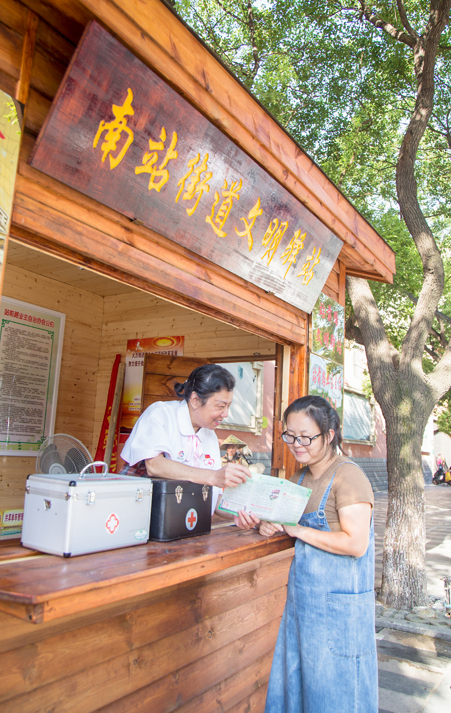 邹德凤在南站街道便民服务点做志愿服务。受访者供图