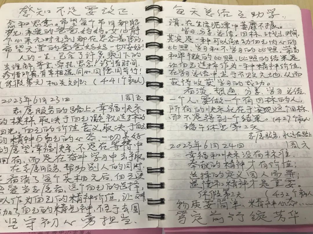 在邹德凤的办公桌上,堆着一摞笔记本。随手翻开一页,里面密密麻麻写满了志愿服务计划、受助人信息等内容,这样的笔记本邹德凤已经写满了43本。