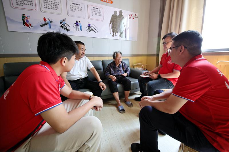 兰考县三义寨乡白云山村稳步推进美丽乡村建设,让村子从一个贫穷落后的传统村落,变成了远近闻名的美丽宜居新乡村,走出了一条有特色可复制的乡村振兴之路。图为8月28日,文明中国主题采访报道组在兰考县三义寨乡白云山村与90岁高龄老人交谈,倾听老人讲述在白云山村的幸福生活。(开封市文明办供图)