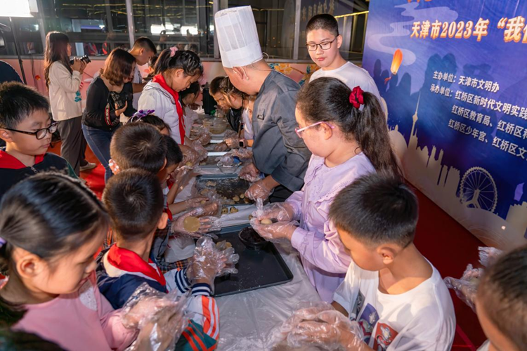 9月26日,天津市红桥区少年宫举办“我们的节日·中秋”主题活动,小朋友们正在学习制作月饼。新华网 钟奕 摄