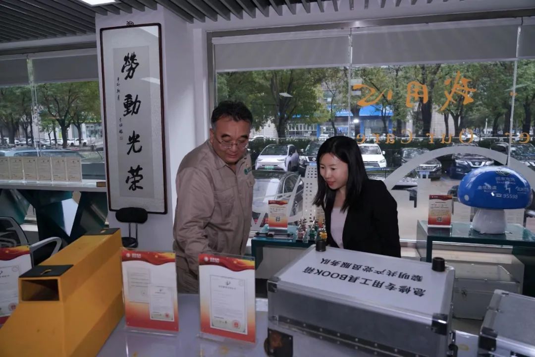 张黎明向记者介绍“急修BOOK箱”和团队获奖荣誉。钟奕 摄