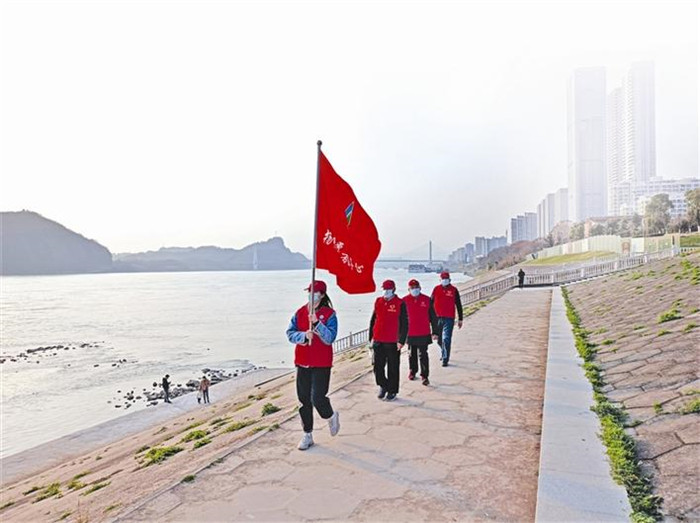 志愿者在长江边巡逻。图片来源:宜昌文明网