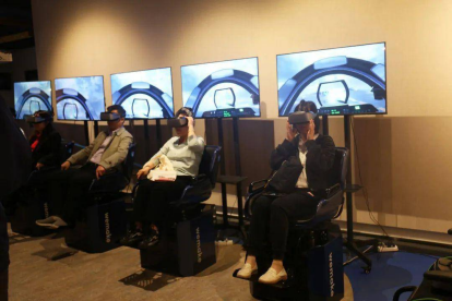 11月27日,“文明中国”主题采访报道组体验“我爱祖国海疆”VR项目。(青岛文明办供图)