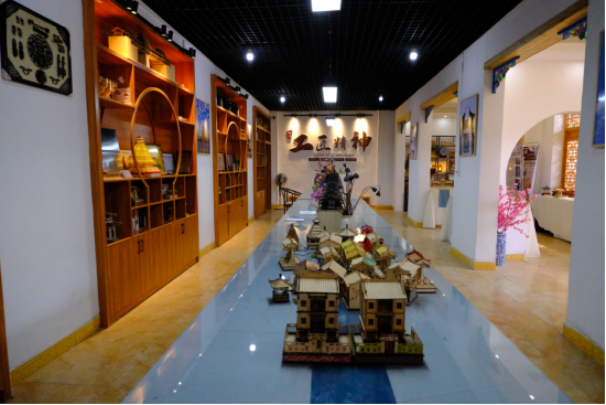 在忠良村的非遗古建筑传承基地里,大大小小的木质古建筑微缩模型整齐摆放在长桌上、展架间,风雨桥、凉亭、阁楼等惟妙惟肖的模型引人注目,一榫一卯,张弛有序,古建筑的魅力跃然于一个个精巧的木质古建筑微缩模型间(10月31日摄)。新华网 刘娜 摄