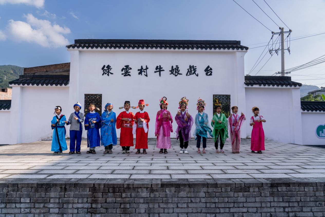 11月1日,广西梧州市岑溪市糯垌镇绿云村的小演员们正在表演牛娘戏。新华网 钟奕 摄