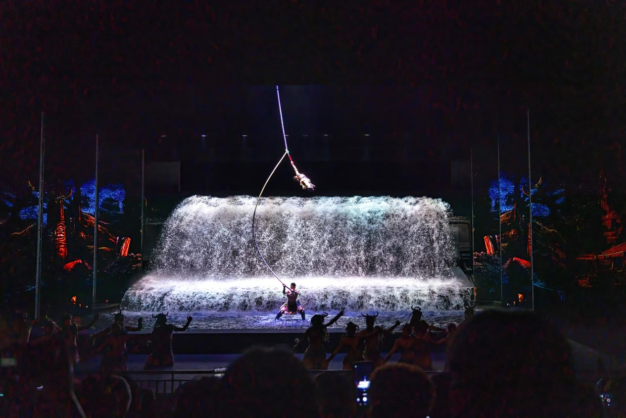 10月29日,广西桂林市阳朔县举行《桂林千古情》文艺演出,通过广西歌舞向游客宣介广西八桂文化。新华网 钟奕 摄