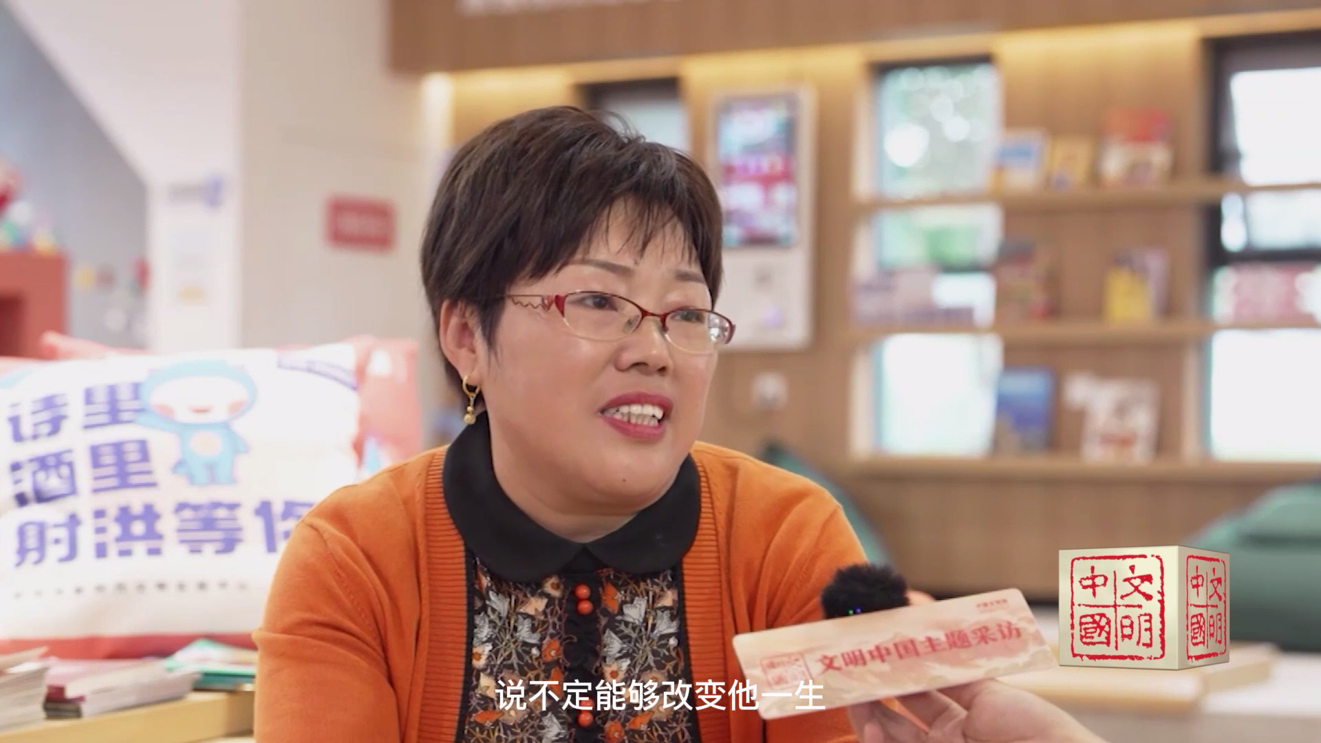 陈远芝向记者讲述她成立第一家免费“爱心书吧”的故事。四川文明网 罗园 摄