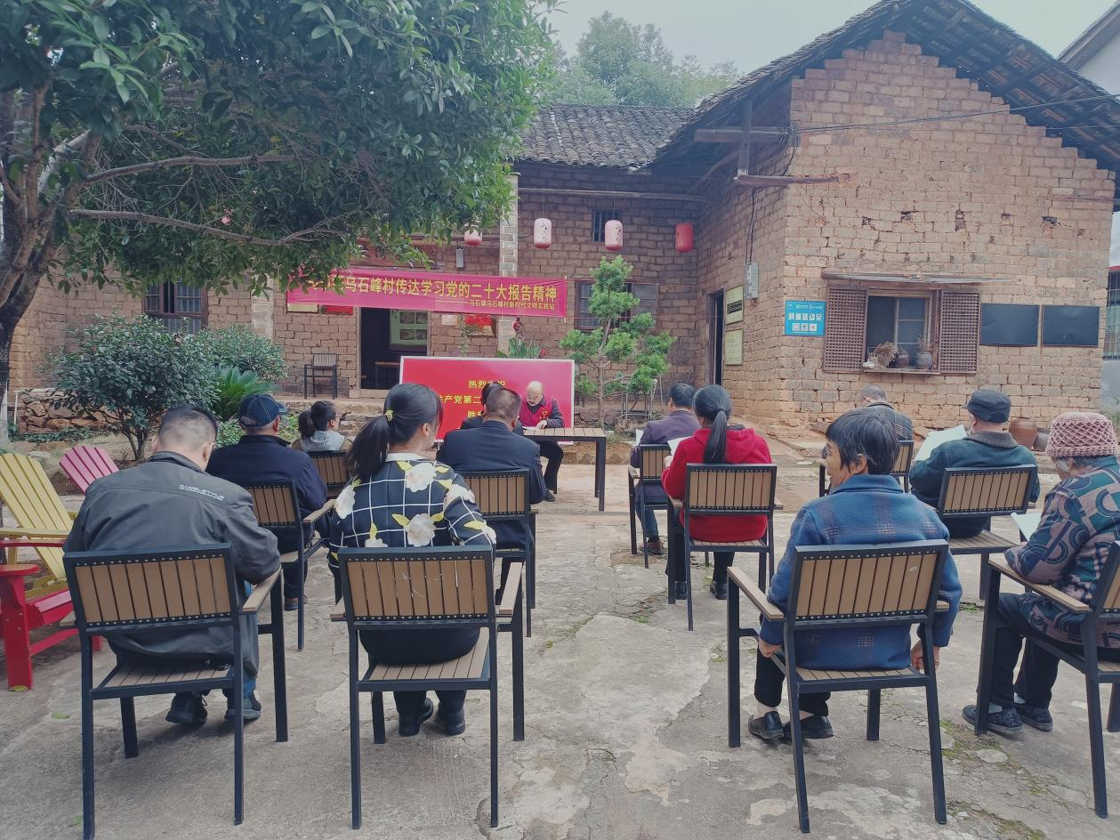 村民们在“大湾学堂”参加党的二十大宣讲活动。湘潭县融媒体中心供图