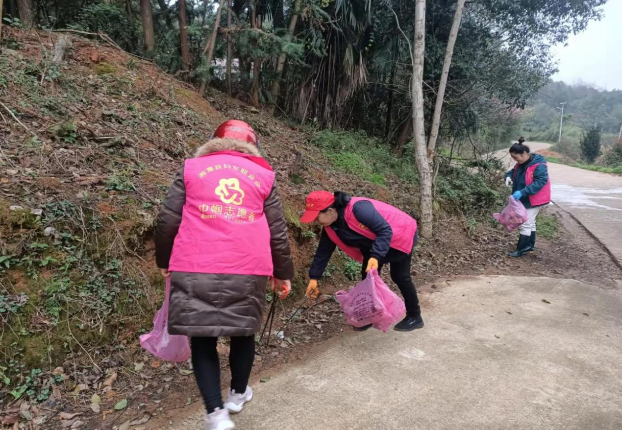 志愿者积极参与人居环境卫生整治工作。湖南湘潭乌石峰村供图