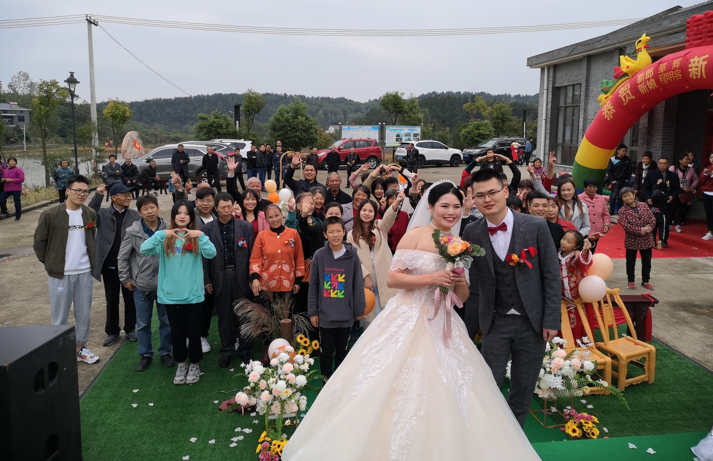 陈洼村红白理事会在红白理事厅简办村民婚礼。