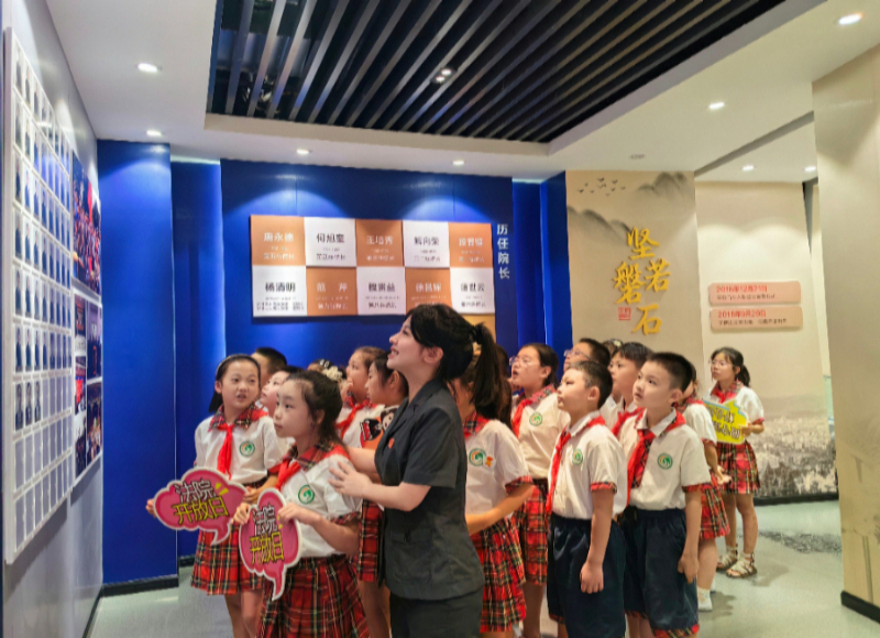 射洪市人民法院萤火虫志愿服务队志愿者任神叶带领孩子们参观射洪市人民法院。射洪市文明办供图