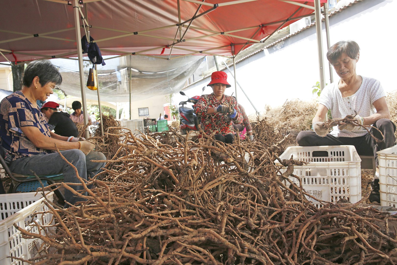 在凤凰山境内,凤丹进入收获期,村民们趁着天气晴好,忙着采挖、加工、晾晒凤丹等,脸上洋溢着收获的喜悦。安徽省文明办 供图
