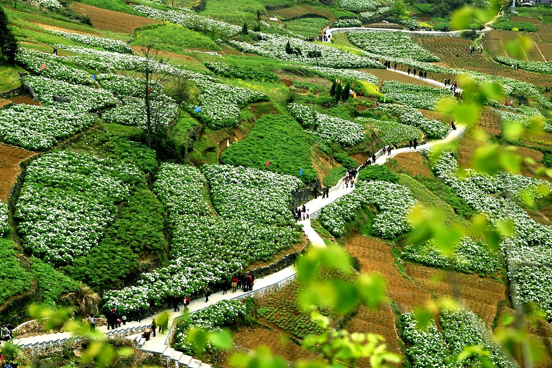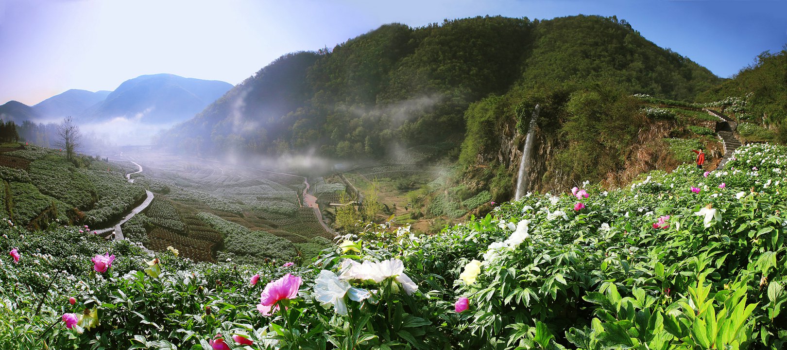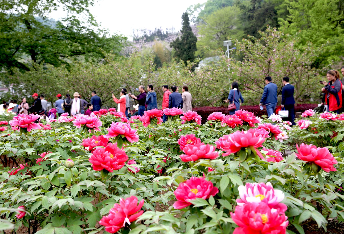 春季的凤凰山景区,成片的凤丹、牡丹竞相开放,将这片山野点缀得格外清雅,游客纷至沓来,流连花海。安徽省文明办 供图
