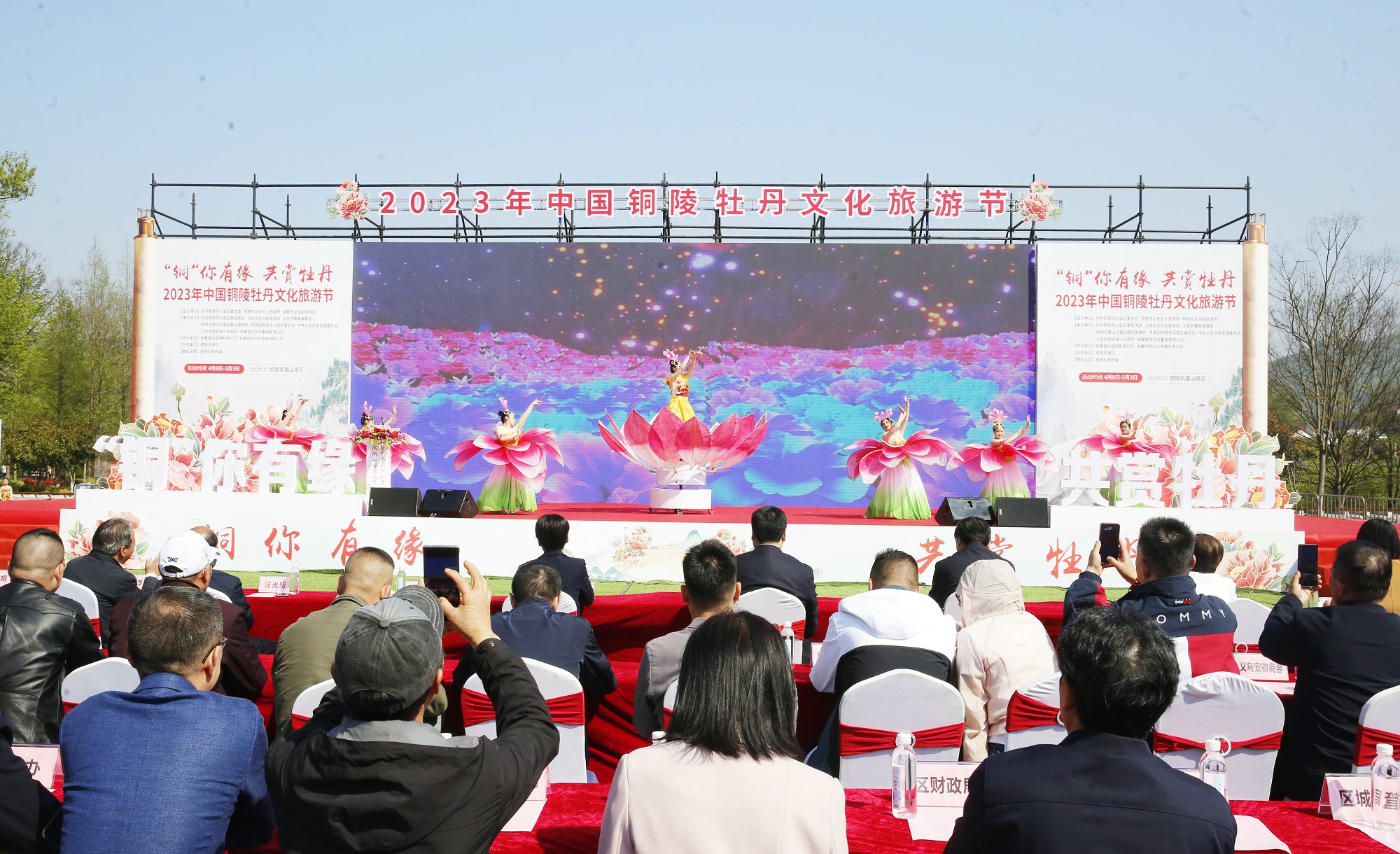 2023年4月8日,中国铜陵牡丹文化旅游节在凤凰山景区开幕,赏花节期间每日接待游客约3.5万人次,以牡丹花海为主要元素的同时,引入观光小火车等娱乐设施,满足游客多元化的需求,进一步丰富旅游业态。安徽省文明办 供图