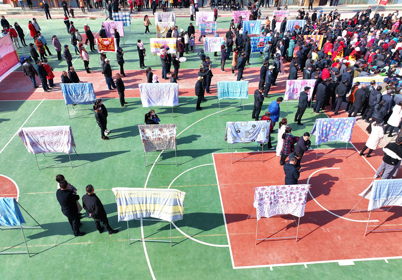 临泽县“二月二”民俗文化艺术节活动当天,蓼泉镇新时代文明实践所组织开展“晒被子·比孝心”敬老爱老志愿服务活动。甘肃张掖市文明办提供