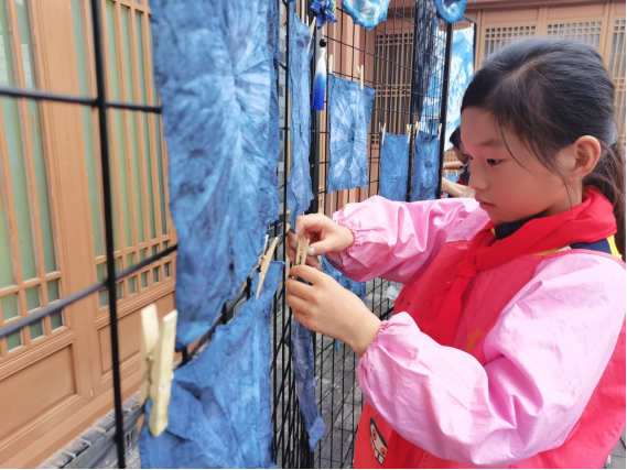 11月2日,在达州市渠县文峰书院,小学生正在体验非物质文化遗产——扎染。新华网发(罗园摄)