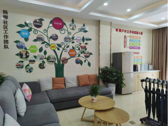 达州市达川区杨柳社区新时代文明实践站为户外工作者提供休息的场所(11月3日摄)。新华网发(赵青 摄)