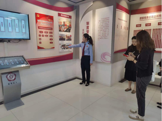 11月3日,国家税务总局达州市税务局工作人员向记者介绍单位文明建设与党建情况。新华网 李然 摄