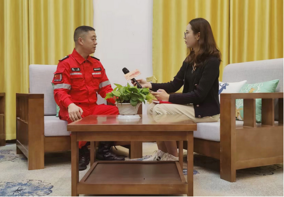 11月2日,“文明中国”主题采访报道组在达州市渠县采访中国好人赵忠(左)。新华网 李然 摄