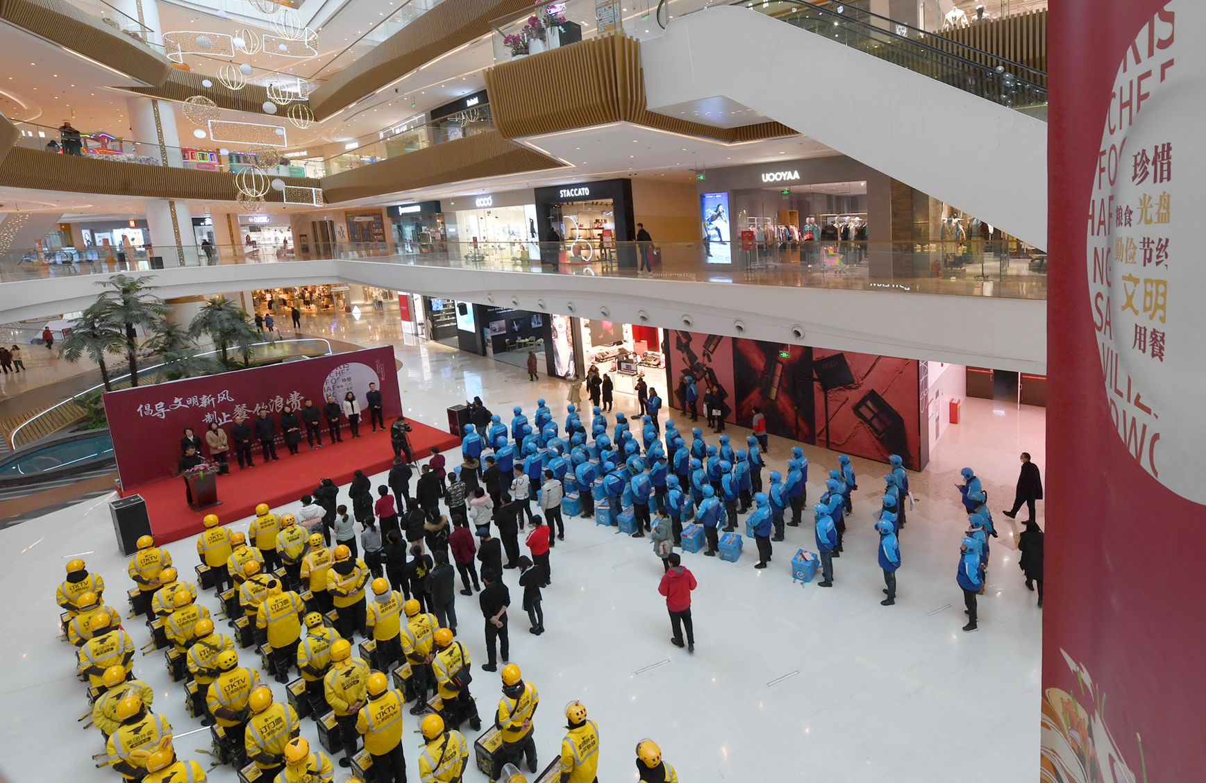 外卖小哥弘扬文明新风专场宣传活动。太原市文明办供图