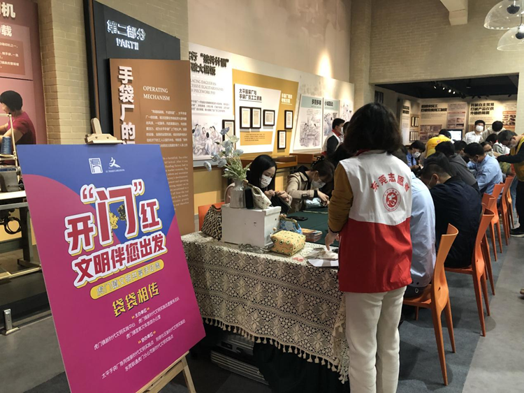 2023年2月6日,东莞市虎门镇开展文明共享活动周“企业员工文明共享”DIY手袋制作体验活动。新华网发(邓国锵 摄)